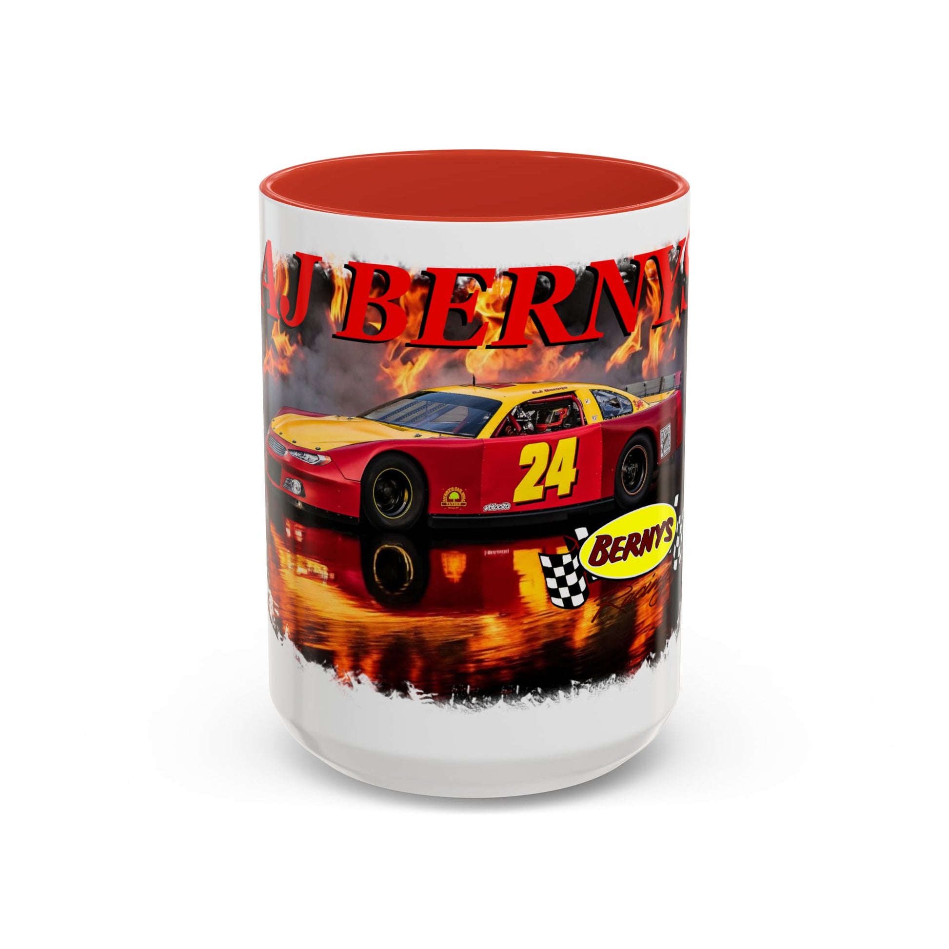 Bernys Racing 15oz coffee mug with vibrant colors and eye-catching color contrast. This mug is microwave and dishwasher safe, making it perfect for daily use. Ideal for coffee lovers and racing enthusiasts, it is a great gift for birthdays, holidays, or just to add some fun to your morning routine.