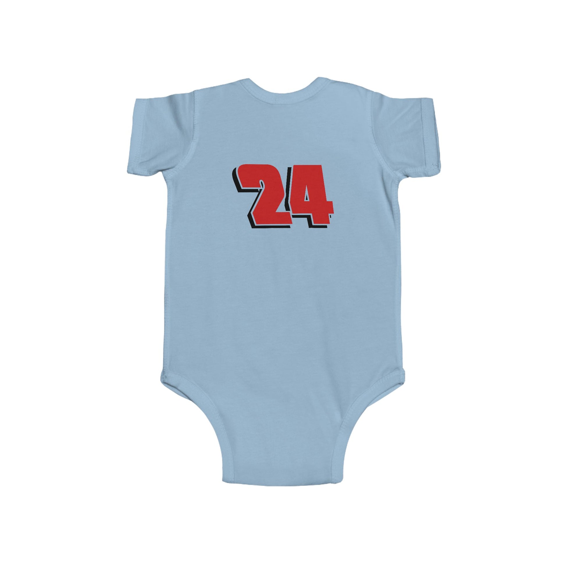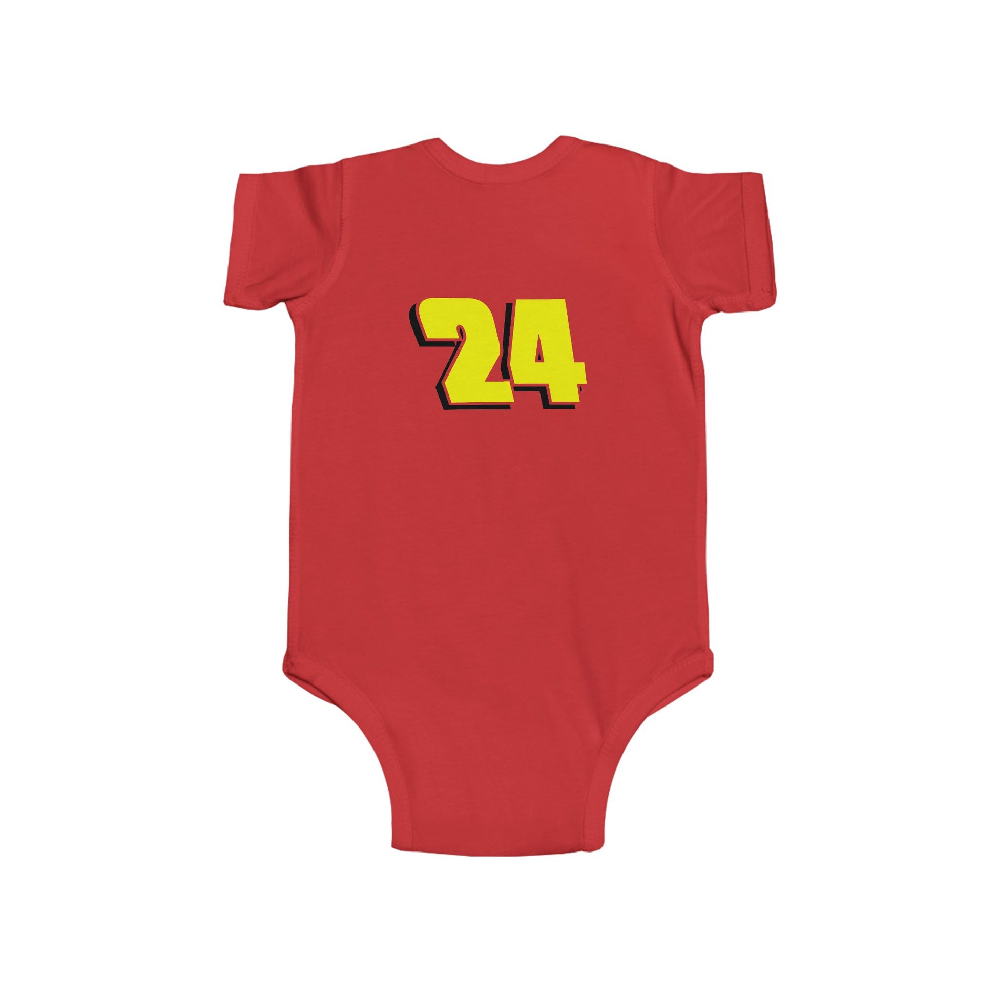 Introducing a charming Infant Fine Jersey Bodysuit, perfect for your little one. This delightful bodysuit combines comfort and style, making it an essential addition to any baby's wardrobe. Designed with playful graphics and vibrant colors, it adds a touch of fun to everyday outfits. The lightweight fabric ensures your baby stays comfortable, while the soft ribbed binding provides ease of movement. Ideal for everyday wear, special occasions, or as a thoughtful gift for baby showers, birthday celebrations, or holidays, this bodysuit is perfect for parents who cherish both style and practicality. Targeting modern parents who appreciate unique and well-crafted baby apparel, this bodysuit brings together cuteness and functionality in one adorable package.